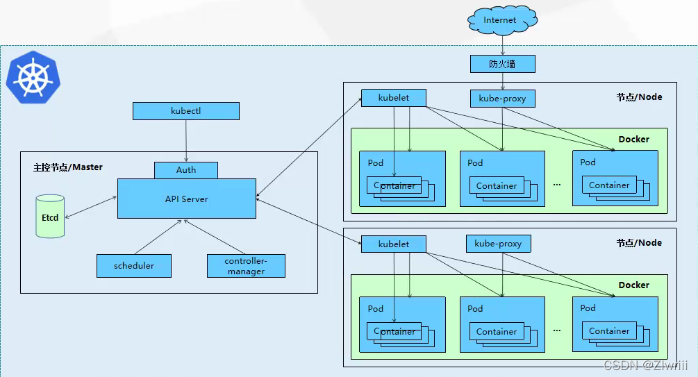 K8S也是一个典型的C/S架构,由master主控节点和node节点组成