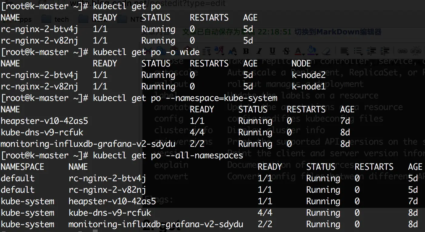 由于博主水平有限,本文主要介绍一些博主在日常中经常使用到的命令,另外最近正式release的kubernetes 1.2中新加入的的一些feature,由于博主也还没有深入研究,所以不会太多涉及。
