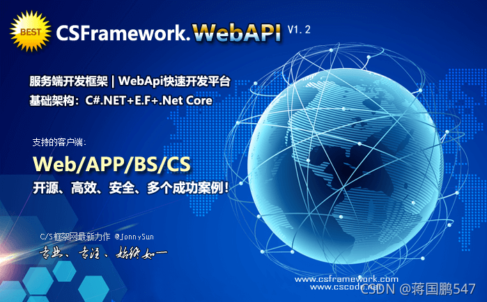 CSFramework.WebApi是服务端快速开发框架(后端框架),基于ASP.NET提供的WebAPI底层架构强大的编程能力,封装成为可复用、可扩展、可定制开发的服务端软件开发框架,助力您快速轻松搭建基于HTTP/HTTPS等协议以及支持多种客户端(如:APP、B/S、C/S、微信公众号、微信小程序等)各种跨平台移动终端的服务端应用程序。