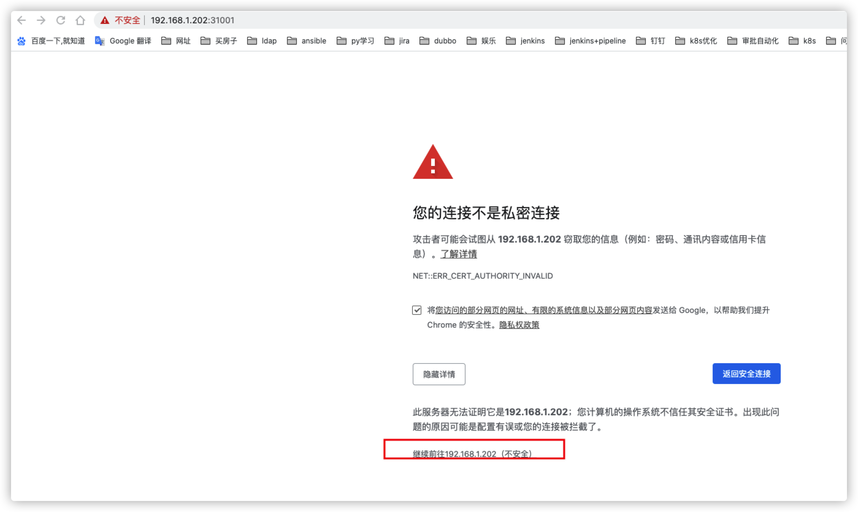 访问https://ip+31001 无法使用谷歌浏览器打开 老样子只能用火狐打开